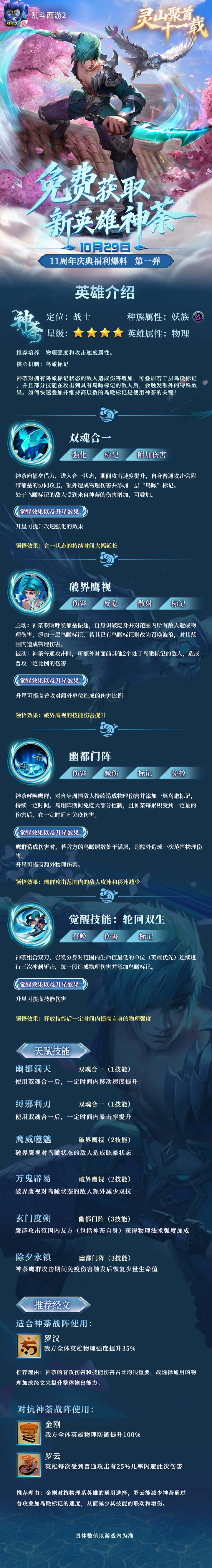 11周年福利爆料:新英雄神荼免费送!英雄介绍抢先看~